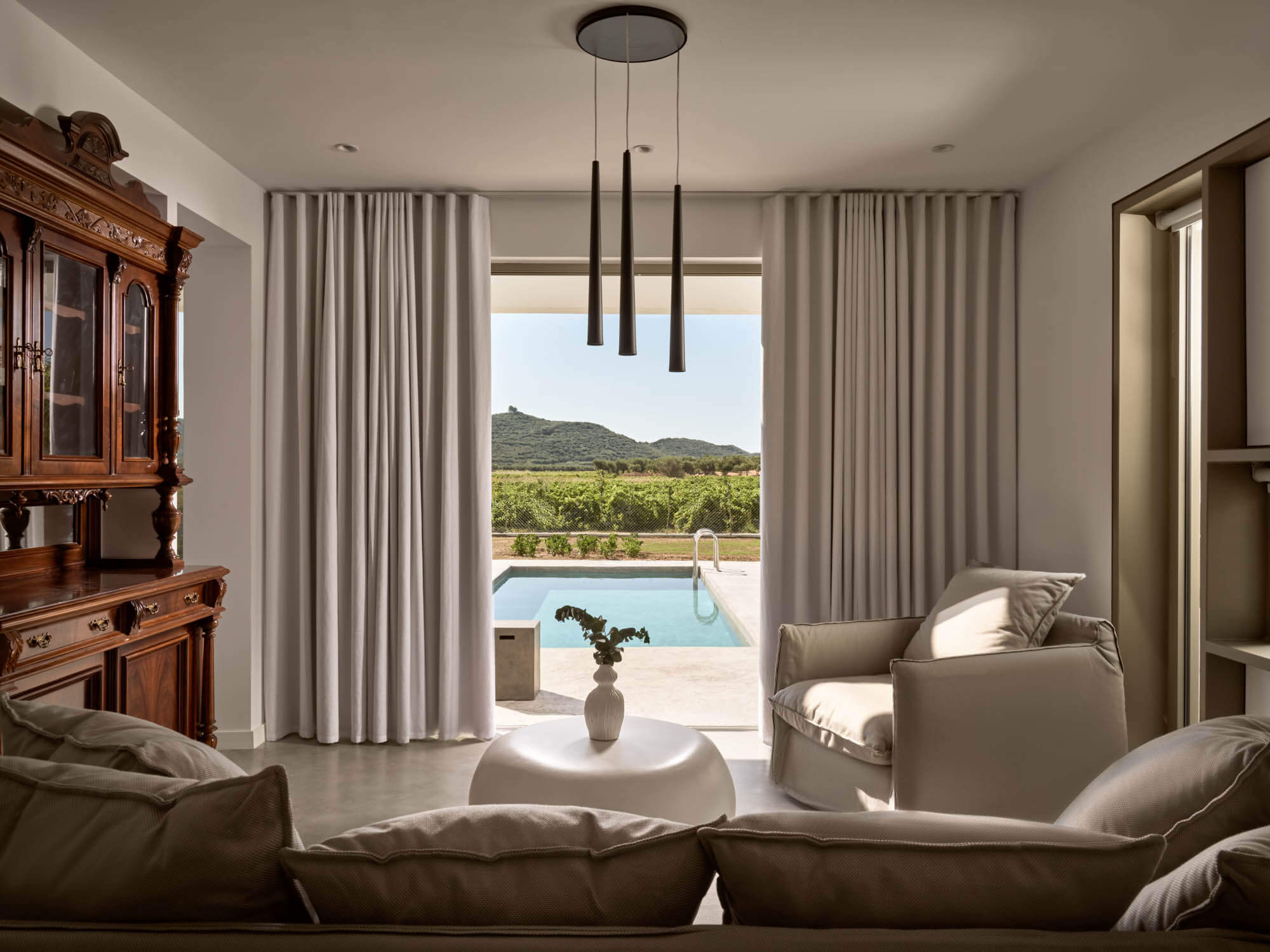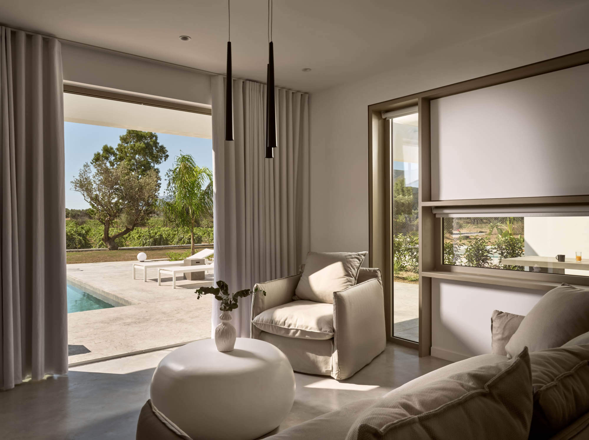 Villa Elaia can comfortably accommodate from 1 to 4 guests who wish to share an elegant villa with a private pool. The villa consists of 2 rooms of 47sqm and 18sqm respectively.