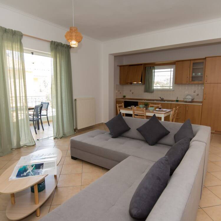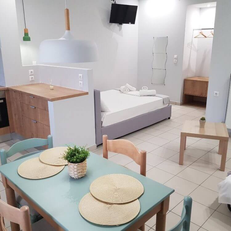 • Fully furnished one bedroom apartments overlooking the Lefkada lagoon and the picturesque windmills with kite surf